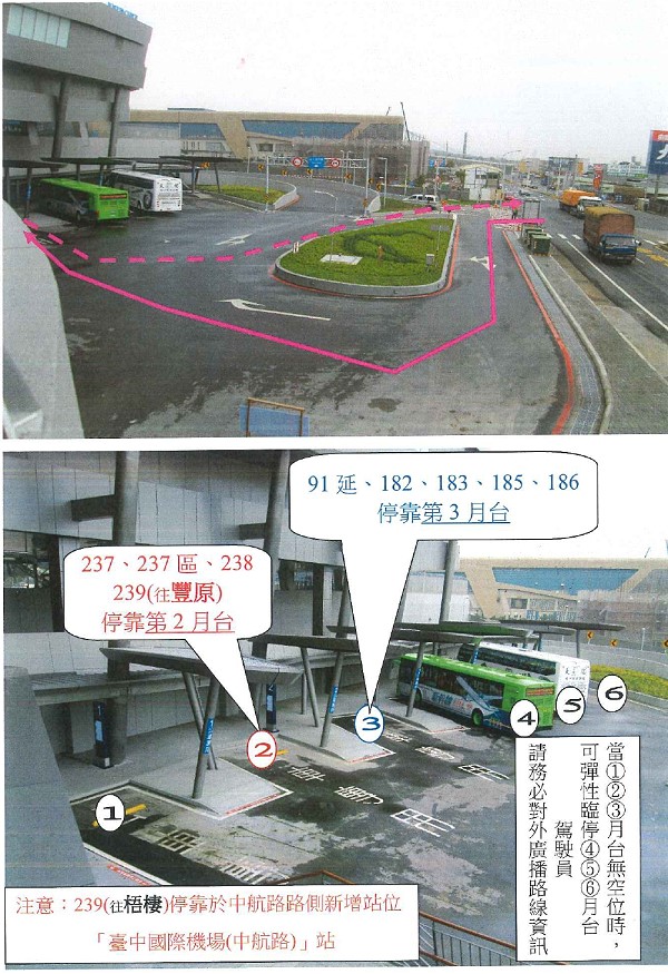 ,臺中國際機場月台停靠配置及行駛動線示意圖